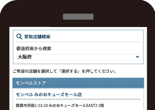 受取店舗検索で都道府県を選び、ご希望の店舗を選択します。