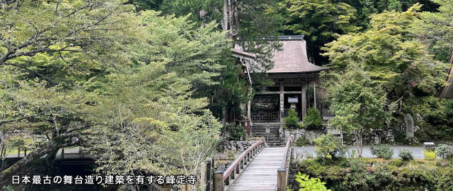 ③峰定寺:平安時代末期に観空西念によって創建された寺院で、古くから修験道の修行の場であった。本堂は、わが国最古の舞台造り建築であり、清水寺舞台造りの原型と言われている。