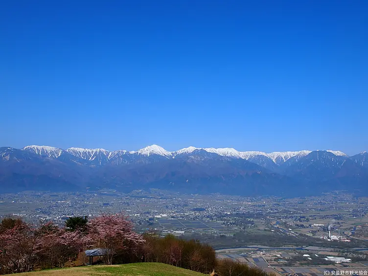 安曇野の西に位置する北アルプス(西山)に対し、東に位置する標高900メートル程度の光城山や長峰山からなる里山です。登山口から頂上まで1時間程度の気軽さで、安曇野と北アルプスの絶景を望めます。