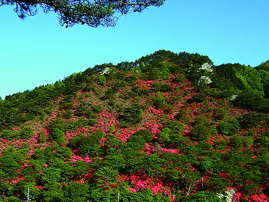 三勝八景があり、山は奇岩怪石に富み、久慈川の清流とともに雄大な景勝地です。春は100本を超えるソメイヨシノと約5万本のツツジ、秋は燃えるような紅葉と、四季折々の美に満ちています。