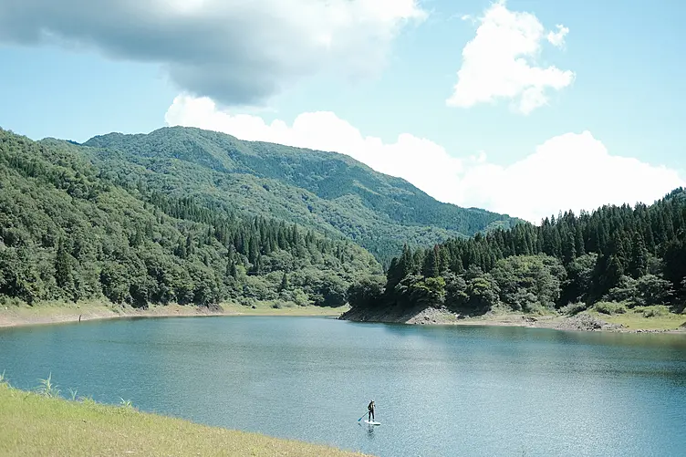 九頭竜湖湖畔にあるオートキャンプ場です。春は桜、夏は青葉、秋は紅葉が美しく、広々としたサイトで、SUPやカヌー、ボートなどの湖上アクティビティも楽しめます。