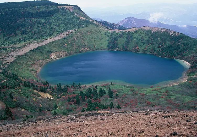 今も火山活動を続けている活火山であり、山頂は岩礫で覆われています。山名は、八幡太郎義家に敗れた安倍貞任(弘法大師という説有)が、山中に仏教教典の一切経を埋めたという伝説に由来します。