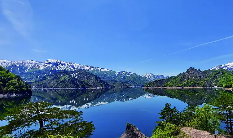 只見川をせき止めてできた広大な人造湖で、新緑や紅葉とのコントラストは絶景です。貯水量が5億tと国内屈指の規模を誇り、サクラマスやイワナ、ワカサギなどの淡水魚の宝庫です。カヤックに乗って雄大な景色が楽しめます。