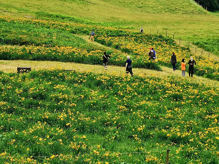 岡山県下最大級のスノーフィールド。パノラマのゲレンデが広がる標高900mの恩原高原は、中国山地の美しい山並みを望みながら、スキーやスノーボードなど、さまざまな雪遊びを満喫できます。毎年6月上旬から中旬にかけては、約18,000株のニッコウキスゲが初夏のゲレンデを彩ります。