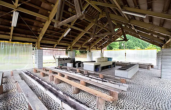 千屋ダムや川に隣接し、サイクリングやカヌー、キャンプなどのアウトドアが満喫できる人気の施設。敷地内の小川では、魚のつかみ取り(要予約)もでき、とりたてをBBQで味わえる。